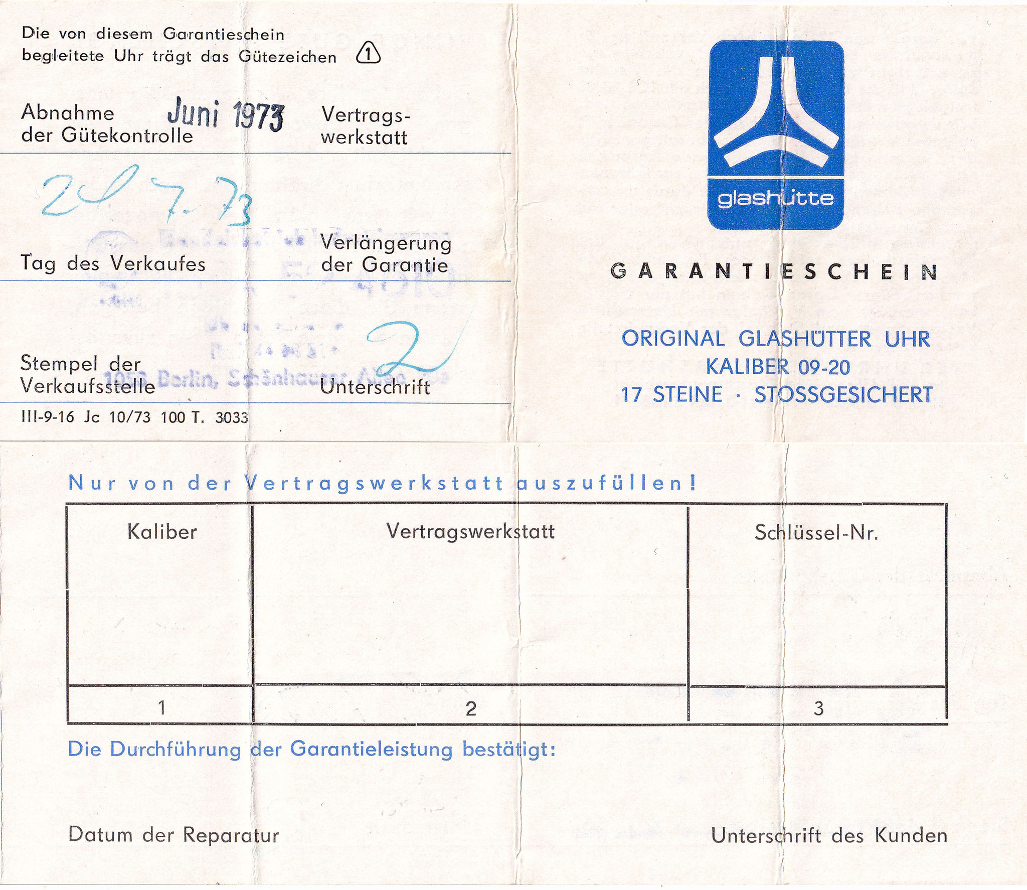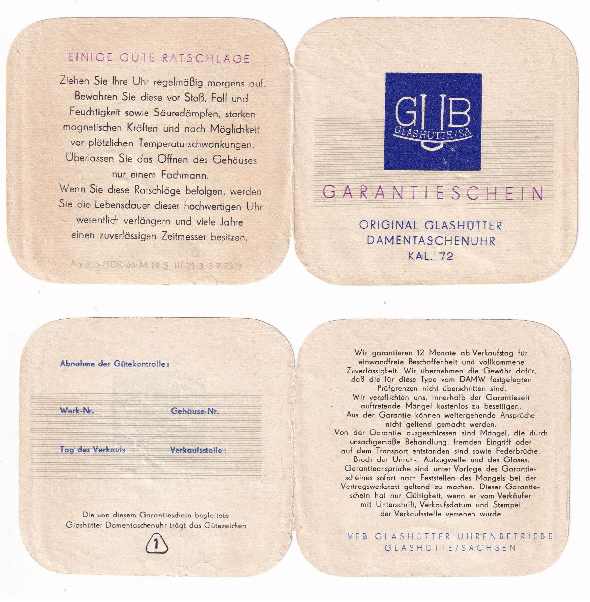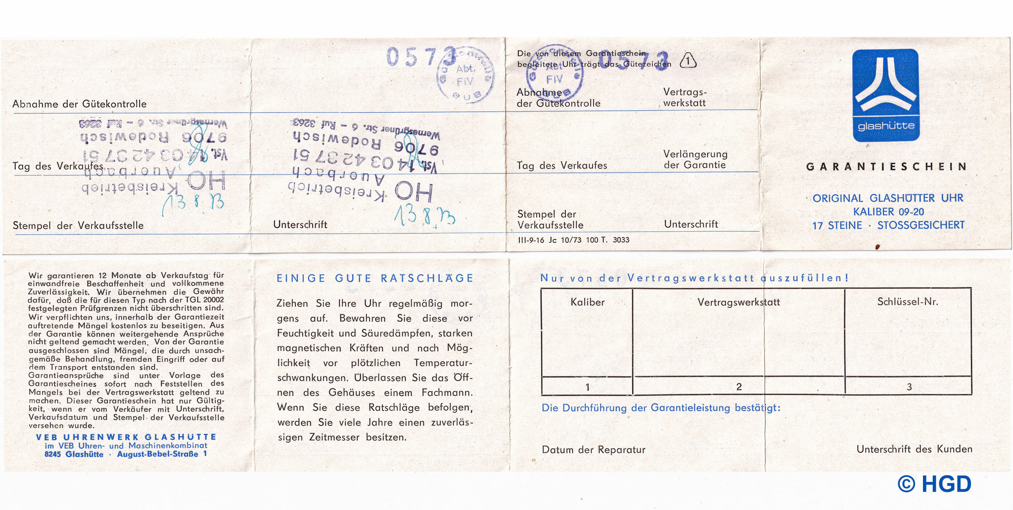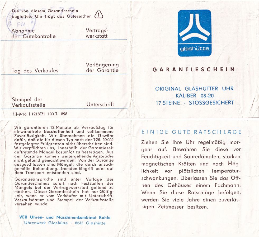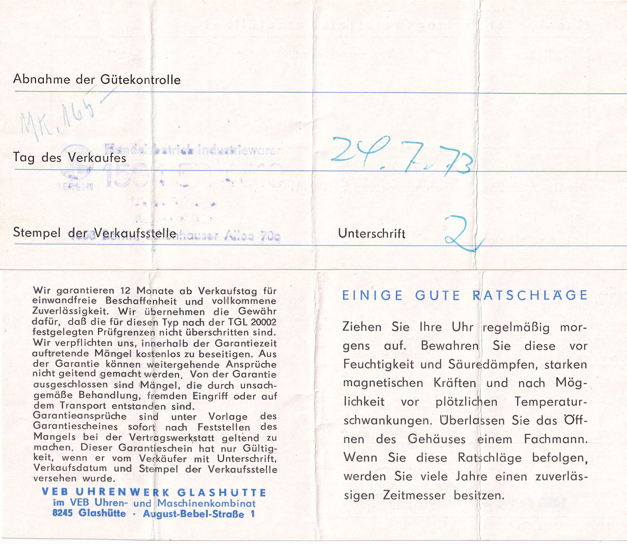 des VEB Glashütter Uhrenbetriebe aus der zweiten Hälfte der 1950er Jahre mit dem
