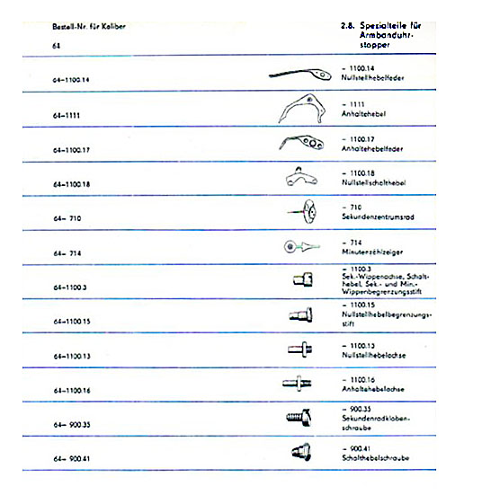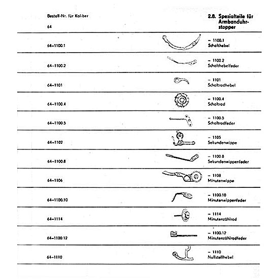 Ersatzteilverzeichnis Armbanduhrstopper GUB Kal.64