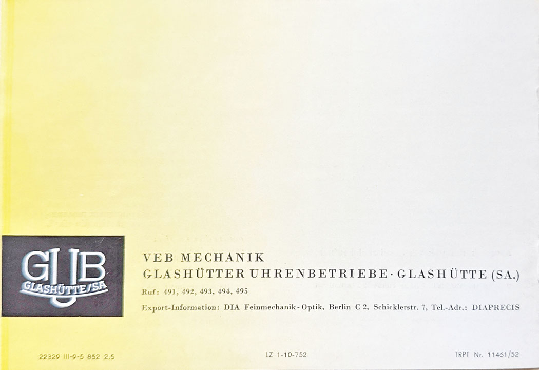 Zum Zeitpunkt der Drucklegung dieses Kataloges war das DDR-Gütezeichen Q für das Modell der GUB Marine-Beobachtungsuhr Kaliber 48 noch nicht verliehen worden.